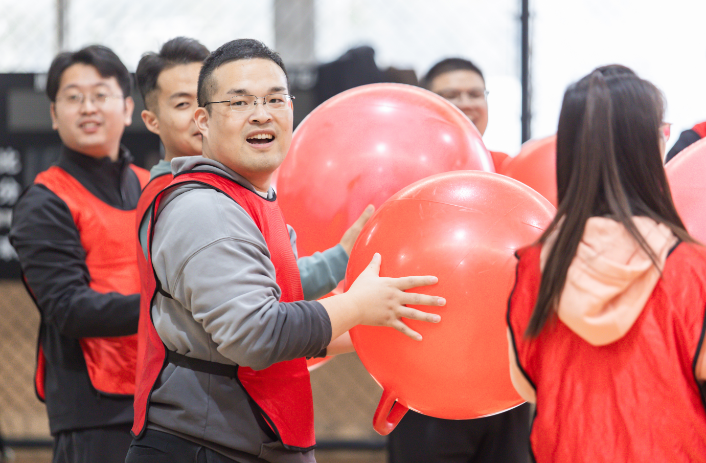 团建开始前,胡向东老师介绍了本次素质拓展训练的目的及意义,希望大家在今天的活动中,既能加速彼此了解,也能在忙碌的工作与学习之间释放压力,更好地建立起团队意识。全体班委向同学们做自我介绍。随后在拓展教练的带领下,70名学员通过报数分成4支队伍,一场充满趣味与挑战的《超级有氧鼓》比赛正式拉开序幕。 本次拓展通过有氧热身、默契挑战、抢位作战与接力往返跳四个项目,紧密协作,让原本陌生的学员们,在韵律中快速熟悉,打破人际隔阂,积极探索解法、相互鼓励、合作拼搏,学员们在互动中深化联结,现场氛围活跃。