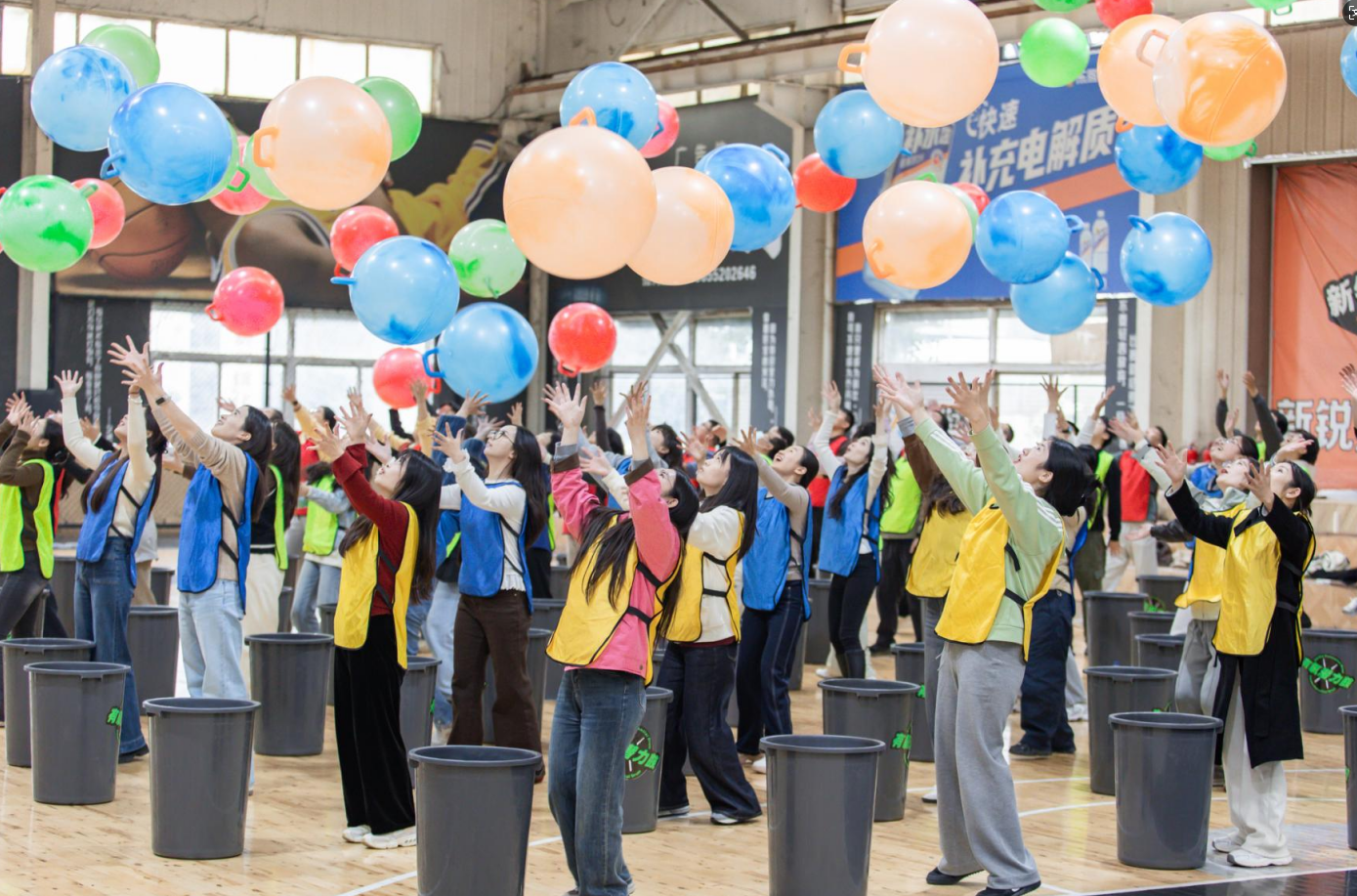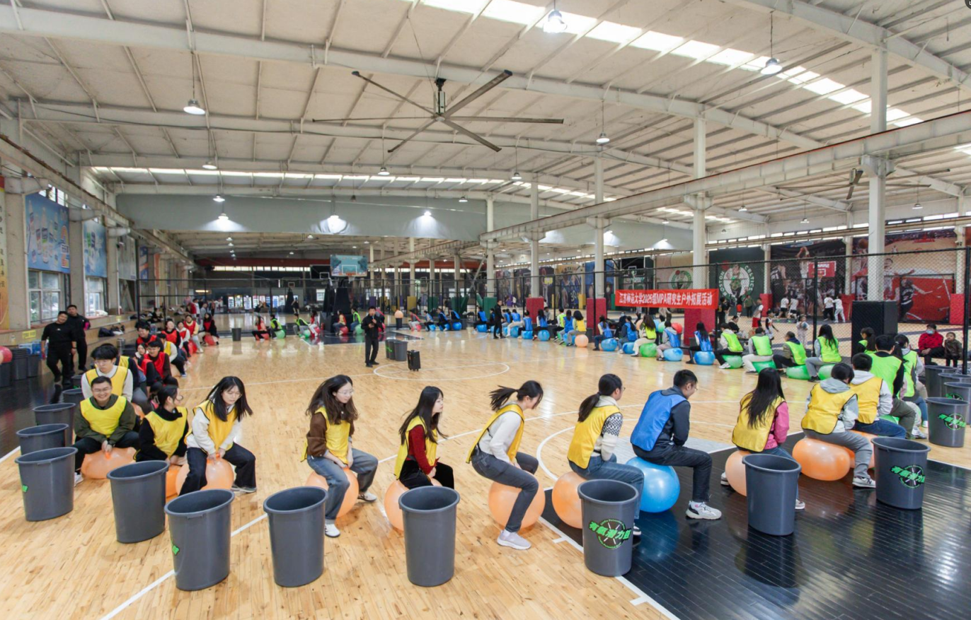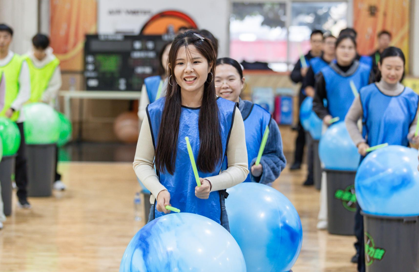 “旗开得胜日,扬帆起航时!”活动尾声,全场目光聚焦,70名学员手持鼓槌,在教练的指导下,将有氧鼓技巧与舞蹈动作相结合,共同演绎歌曲《旗开得胜》。激昂的鼓点、整齐的肢体动作与嘹亮的合唱声回荡在篮球馆内,将本次活动推向高潮,为本次拓展训练画上了完美的句号。